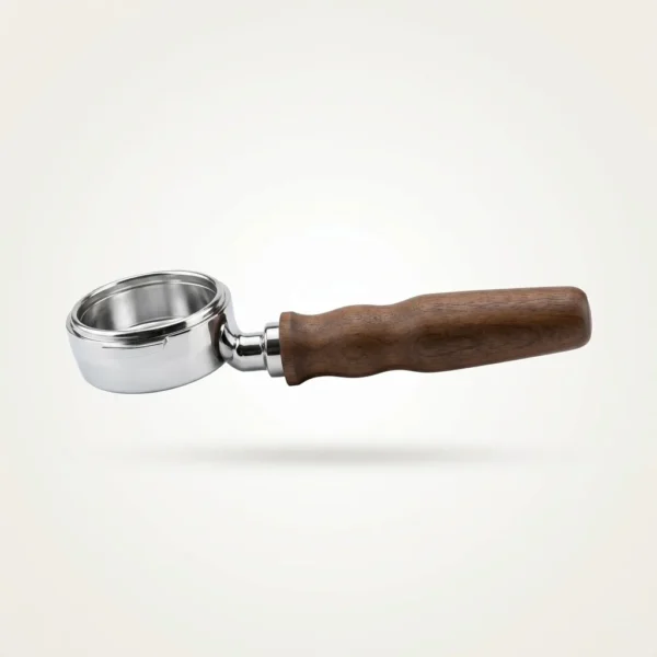 ראש הפורטפילטר עשוי מפלדת אל-חלד 304, חומר עמיד שמבטיח אורך חיים ואינו משפיע על טעם הקפה. ידית מעוצבת מעץ אגוז טבעי בעיצוב ארגונומי המאפשר אחיזה נוחה ויציבה במהלך השימוש.